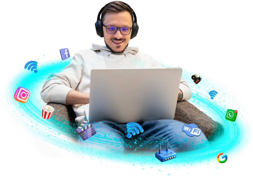 Conecte seu lar à excelência com nossa banda larga fixa. Desfrute de uma rede Wi-Fi robusta em todos os cantos da sua casa, proporcionando uma experiência online fluida para toda a família.